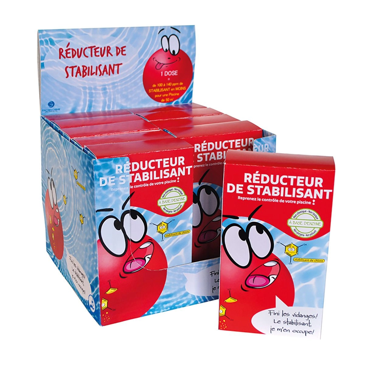 Le rĂ©ducteur de stabilisant diminue le niveau d’acide cyanurique en toute sĂ©curitĂ©, naturellement, et rapidement. Il opère grâce Ă une technologie de biocatalyseurs avancĂ©s : en effet, il Ă©limine le verrouillage du chlore et lui redonne ainsi son pouvoir dĂ©sinfectant. La molĂ©cule va se dĂ©composer par l’enzyme au contact de l’eau : c’est ce qu’on appelle hydrolase et c’est un processus totalement biologique.